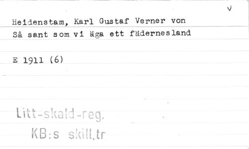//// Heidenstam, Karl Gustaf Verner von Så sant som vi äga ett fädernesland //// E 1911 (6) //// s.dM.tr