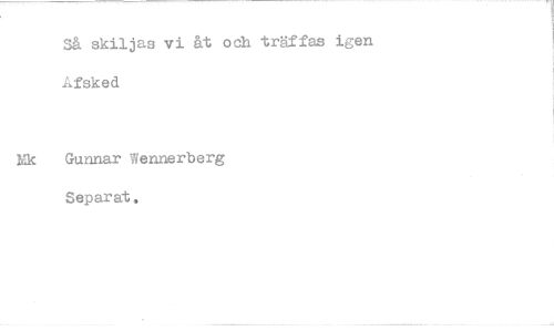 //// Så skiljas vi åt och träffas igen Afsked //// Gunnar Wennerberg Separat.