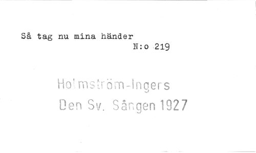 //// Så tag nu mina händer //// N:o 219 //// ho' niström-higers C en Sy, Sången 1927