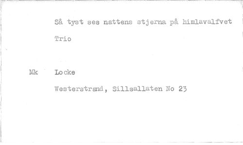 //// Så tyst ses nattens stjerna på himlavalfvet Trio //// Lo eke //// Westerstrand, Sillsallaten No 23