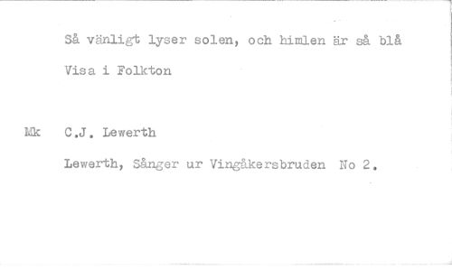 //// Så vänligt lyser solen, och himlen är s& blå Visa i Folkton //// C.J. Lewerth //// Lewerth, Sånger ur Vingåkersbruden No 2.