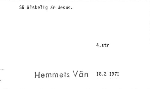 //// Så ätskelia är Jesus. //// 4.str //// Hemmets '/än is ? t9?t