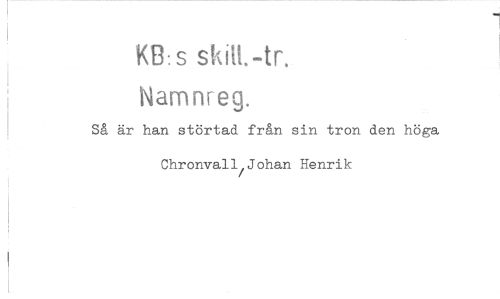 //// i //// KB:s skiH.-tr. //// i //// Namnreg. //// Så är han störtad från sin tron den höga Chronvall^Johan Henrik