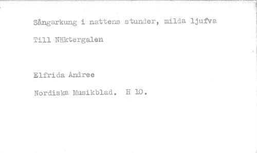 //// Sång arkung i nattens stunder, milda ljufva Till Näktergalen //// Elfrida Andree //// Nordiska Musikblad. H 10.
