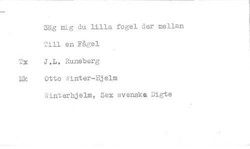 //// Säg mig du lilla fogel der mellan Till en Fågel J.L. Runeberg Otto Winter-Hjelm Winterhjelm, Sex svenska Digte