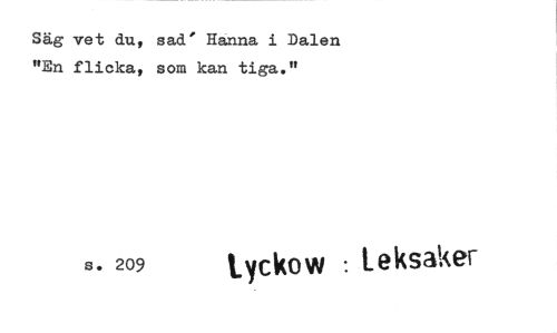 //// Säg vet du, sad' Hanna i Dalen "En flicka, som kan tiga." //// s. 209 Leksaker