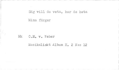//// Säg vill du veta, hur de heta Mina färger //// Mk C,M. v, Weber //// Musikaliskt Album H. 2 N:o 12