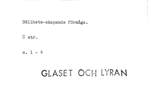 //// Sällhets-skapande förmåga. 8 str. s. 1 - 4 //// GLASET OCH LYRAN