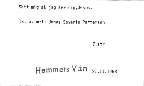 //// Sätt mig så jag ser dig,Jesus. //// Tx. o. mel: Jonas Severin Pe+tersen //// 7.str //// Hemmets Vdn 21.11.1968
