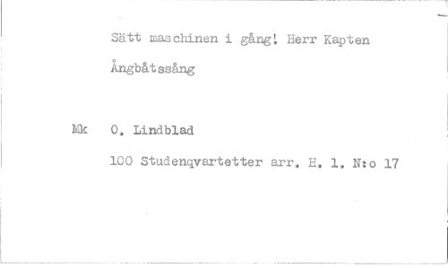 //// Sätt maschinen i gångL Herr Kapten Angbåt ssång //// 0. Lindblad //// 100 Studenqvartetter arr, H. 1, N:o