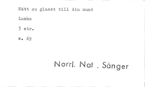 //// Sätt nu glaset till din mund Lambo 3 str. s. 69 //// Norri. Naf . Sånger