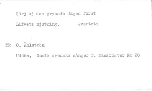 //// Sörj ej den gryende dagen förut Lifvets njutning. kvartett //// 0. Åhlström //// Uddén, Gamla svenska s&nger f. Mansröster No 20