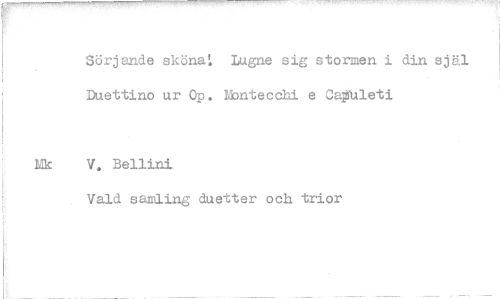 //// Sörjande skönaL Lugne sig stormen i din själ Duettino ur Op. tbntecchi e Ca^fUleti //// V, Bellini //// Vald sanning duetter och trior