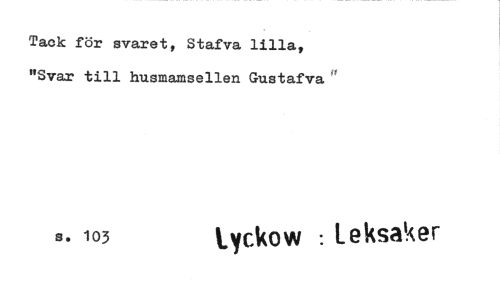 //// Tack för svaret, Stafva lilla, "Svar till husmamsellen Gustafva //// s. 103 Lyckow : //// Leksaker