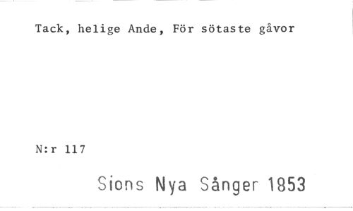 //// Tack, helige Ande, För sötaste gåvor //// N:r 117 //// Sions Nya Sånger 1853