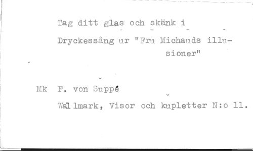 //// Tag ditt glas och skänk i //// Dryckessång ur "Fru Michauds illusioner" //// F. von Suppå //// WaL lmark, Visor och kupletter N:o
