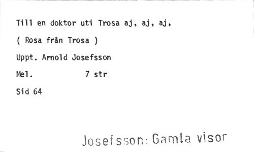 //// Till en doktor uti Trosa aj, aj, aj, ( Rosa från Trosa ) //// Uppt. Arnold Josefsson Mel. 7 str //// Sid 64 //// Josef ssort: Gamta visor