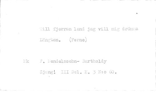 //// .ill fjerran land jag vill nig droima Längt an. (F e me) //// Hk F. Lendelssolm- Bartholdy //// Sjungl 111 Del. E, 3 N;o 60.