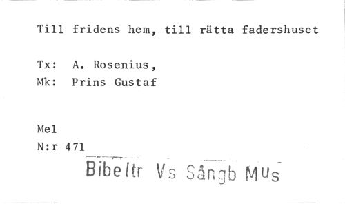 //// Till fridens hem, till rätta fadershuset //// Tx: A. Rosenius, //// Mk: Prins Gustaf //// Mel //// N:r 471 //// Bibeftr Vs Sångb M"s