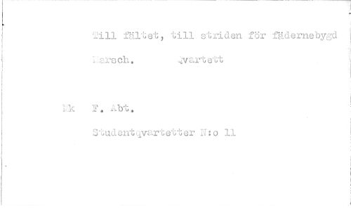 //// Till fältet, till striden for fädernebygd 4. .s.rs ch. art ett //// ?. Abt. //// Studentqvartetter N:o 11