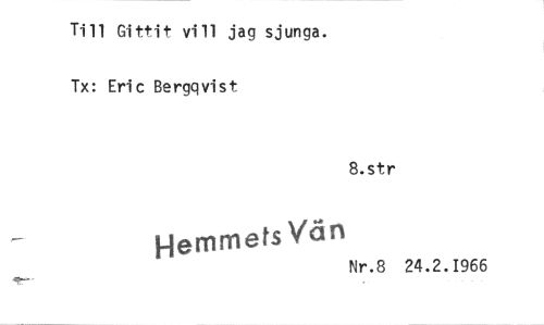 //// Till Gittit vill jag sjunga. //// Tx: Eric Bergqvist //// 8.str //// Hemmets Vän //// Nr.8 24 //// .2.1966