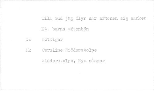 //// '2ill Gud jag flyr när aftonen sig sähk Ett barns aftonbön Tx Bottiger 1 k Oaroline Ridderstolpe //// ^idderstolpe, Nya sånger