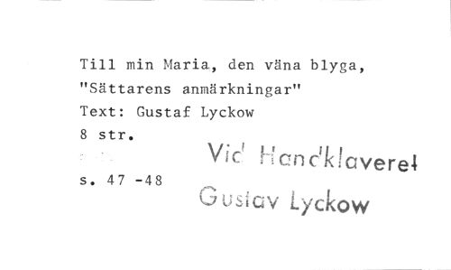 //// Till min Maria, den våna blyga, "Sättarens anmärkningar" //// Text: Gustaf Lyckow //// Vic' Hcrtc'{<!overe( //// S. 47 -4 8 //// Lyckow