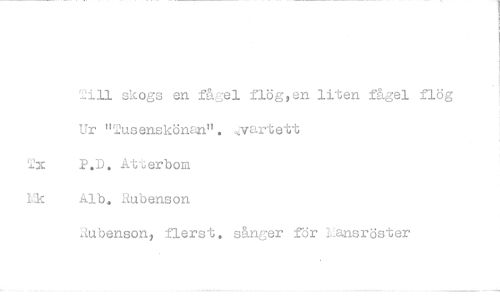 //// Ur "Tusenskönan". ^vartett P.D. Atterbom Alb, Rubenson //// Au benson, flerst. s&nger för Liansröster