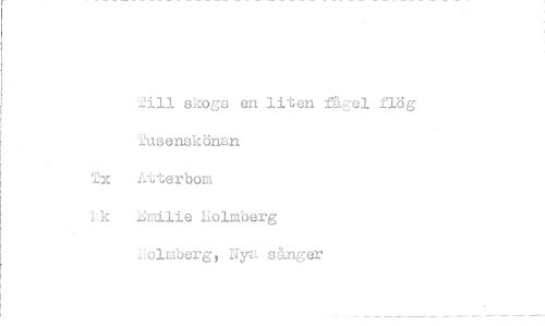 //// Till skogs en liten få Tusenskönan Atterbom Emilie Holmberg Aolmberg, Nya sånger
