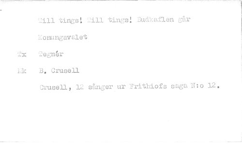 //// Jill tingsL -Jill tings I Budkailen går //// Konungavalet //// -egn&r //// B. Crusell //// Orusell, 12 sånger ur ?rithiofs saga N:o 12.