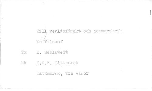 //// Till verldsförakt och jemmerskrik filosof E. SeMstedt O.G.R. Littmarck Littmarck, Tre visor