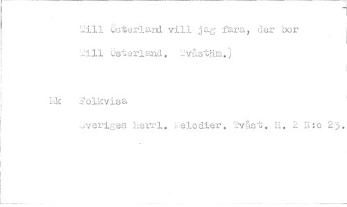 //// Till österland vill jag fara, der bor Till Österland. Tv&stäm,) //// 'k Folkvisa //// Jv er iges herrl. ..elodier. Tvåst. H. 2 //// 1 //// N:o 23.