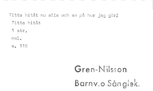 //// Titta hitåt nu alla och se pA hur jag görj Titta hitåt 1 str, mel. s. 118 //// Gren-Nitsson