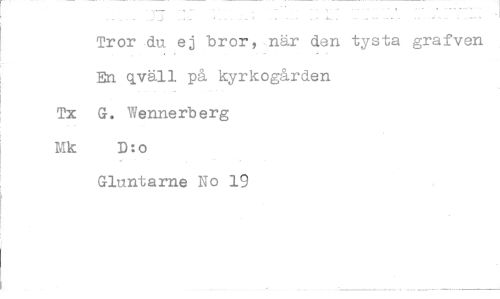 //// Tror du ej bror, när den tysta grafven En qväll på kyrkogården Tx G. Wennerberg Mk D:o //// Gluntarne No 19