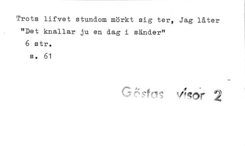 //// Trots lifvet stundom mörkt sig ter, Jag låter "Det knallar ju en dag i sänder" //// 6 str. s. 61