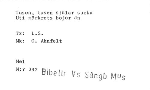 //// Tusen, tusen själar sucka //// Uti mörkrets bojor än //// Tx: L.S. //// Mk: 0. Ahnfelt //// Mel