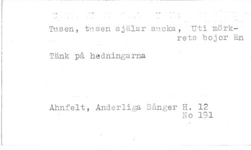 //// Tusen, tusen själar sucka, Uti mörk- //// rets bojor än //// Tänk på hedningarna //// Ahnfelt, Anderliga Sånger H. 12 //// No 191