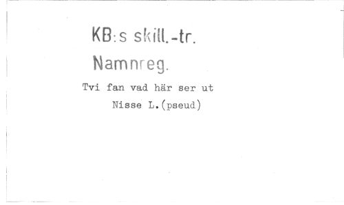 //// KB:S skiM.-tr. Namnreg. //// Tvi fan vad här ser ut Nisse L.(pseud) //// !