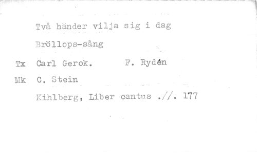 //// Två händer vilja sig i dag Bröllops-sång //// Tx Carl Gerok. F. Rydén //// Mk C. Stein //// Kihlberg, Liber cantus .//. //// 177