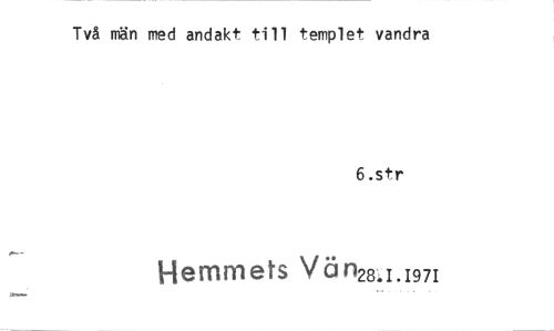 //// Två män med andakt till templet vandra //// 6.str //// Hemmets