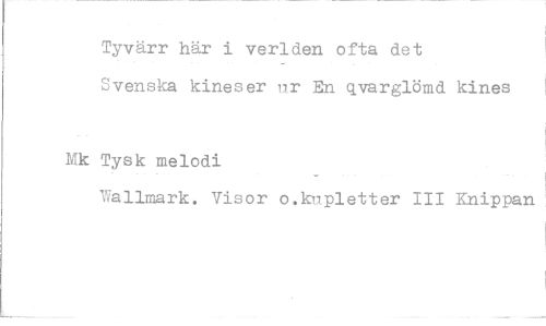 //// Tyvärr här i verlden ofta det Svenska kineser ur En qvarglömd kines //// Mk Tysk melodi //// Wallmark. Visor o.kupletter 111 Knippan