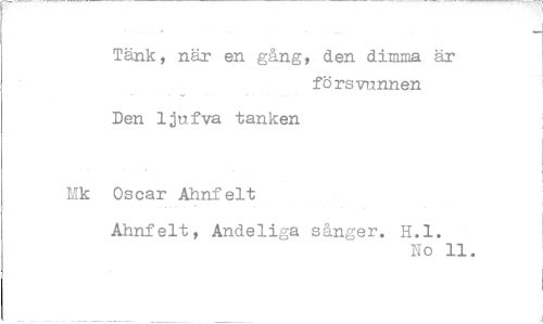//// Tänk, när en gång, den dimma är //// försvunnen //// Den ljufva tanken Oscar Ahnfelt //// Ahnfelt, Andeliga sånger. H.l. //// No 11.