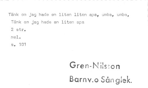//// Tänk om jag hade en liten liten apa, umba, umba, Tänk om jag hade en liten apa 2 str. mel. s. 101 //// Gren-N:!s5on Barnv.o Sånglek.