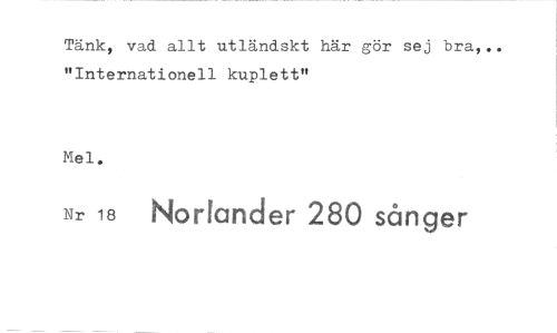 //// Tänk, vad allt utländskt här gör sej bra, "Internationell kuplett" //// Mel. //// Nr 18 Nortander 280 sånger