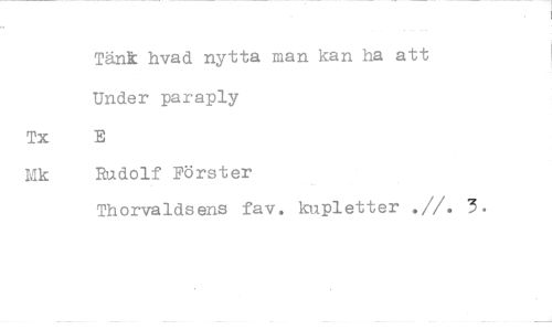 //// Tänk hvad nytta mankan ha att Under paraply E //// Rudolf Förster //// Thorvaldsens fav. kupletter .//. 3.
