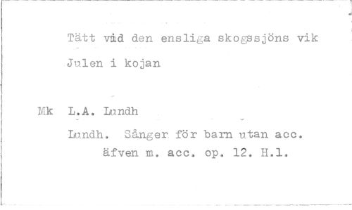 //// Tätt vmd den ensliga skogssjöns vik Julen i kojan //// L.A. Lundh //// Lundh. SÅnger för bam utan acc. äfven m. acc. op. 12. H.l,