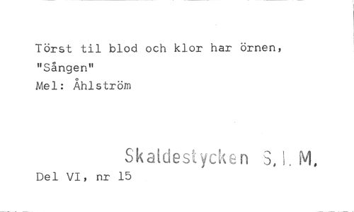 //// Törst til blod och klor har örnen, "Sången" //// Mel: Åhlström //// Skatdestycken S,!. M, //// Del VI, nr 15