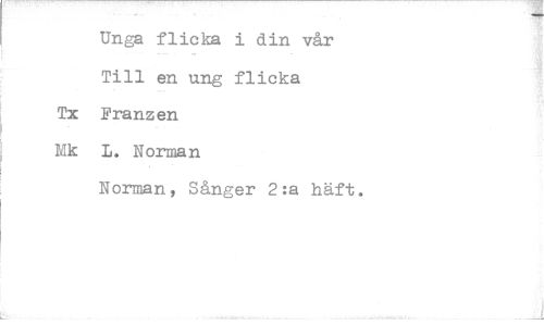 //// Unga flicka i din vår Till en ung flicka Tx Franzén Mk L. Norman //// Norman, Sånger 2:a häft.
