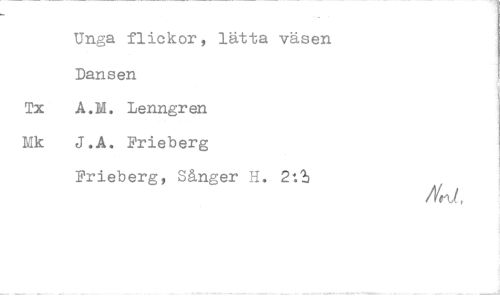 //// Unga flickor, lätta väsen Dansen //// A.M. Lenngren J.A. Frieberg Frieberg, Sånger H. 2:2)