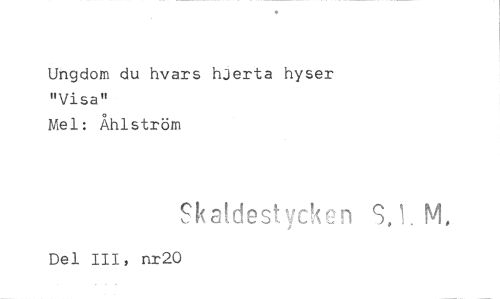 //// Ungdom du hvars hjerta hyser "Visa" //// Mel: Åhlström //// Ska!,destvcken SJ M, //// Del 111, nr20